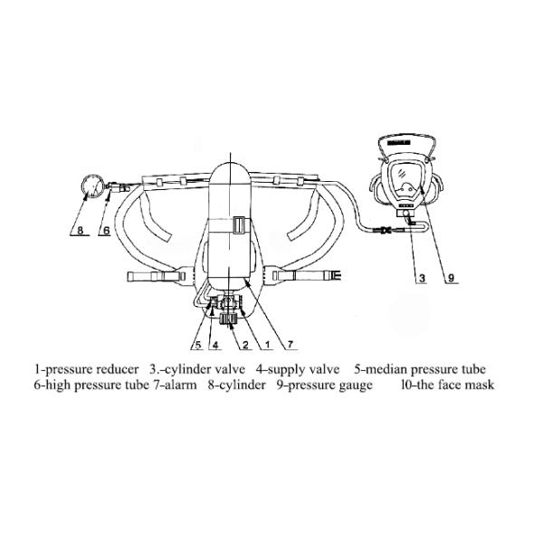 Back care is the role of supporting the fixed cylinder and pressure reducer. Back care on the uniformly distributed load from the two shoulder straps. Formed by the shoulder strap and belt strap, can quickly adjust the length, so that back care close to the body back, buttocks. Cylinder using quick fixtures fixed in care on the back for different diameter cylinders can be adjusted with a fixed length to be fixed.