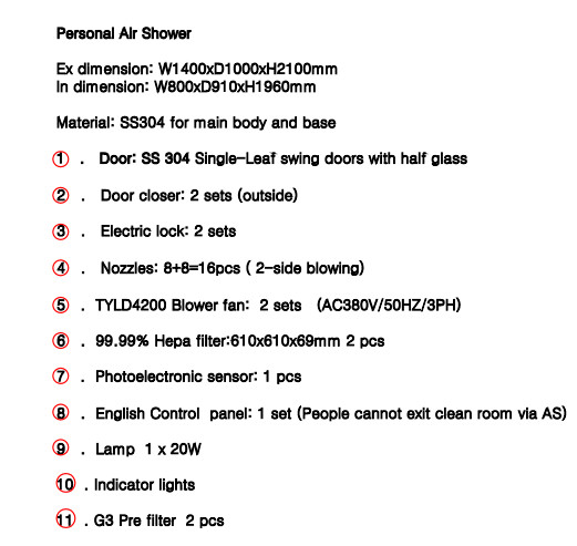| Product | Adjustable Shower Time High Quality Personal Air Shower Room With Full Stainles Steel Material |