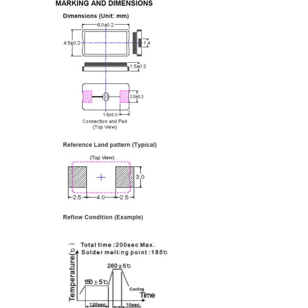 | Package | SMD 8.0 x 4.5 x 2.0mm |