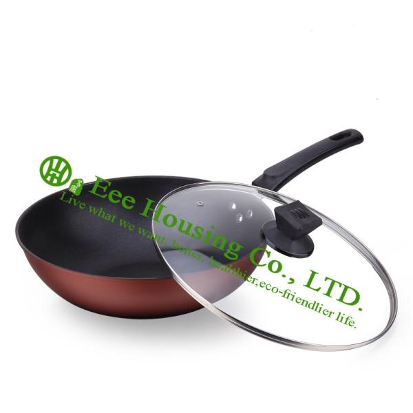 2016 hotsale new kitchen products for iron wok cookware with glass lid,32cm non-smoking non-stick wok