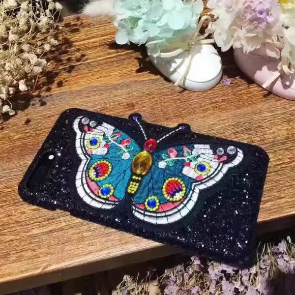 Hard PC Korea Style Girls Beauty Butterfly Embroidery Glitter Back Cover Cell Phone Case For iPhone 7 6s Plus