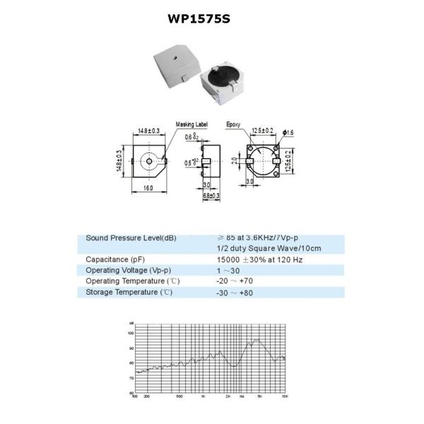ide Operating Temperature SMD/SMT Piezo Buzzer WP1575S With Lead Free , 3600Hz
