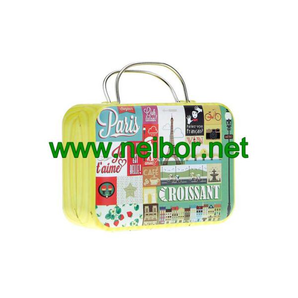 gift tin suitcase tin box with handle for wedding to pack chocolate or candy,wedding favor mini size candy tin box