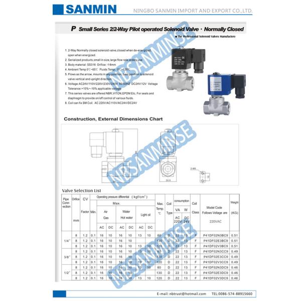 2. Nominal pressure solenoid valve of the highest calibration must be more than the highest pressure in the pipeline , otherwise life will shorten or other unexpected circumstances .
