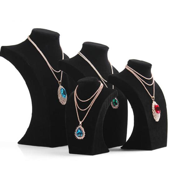 Jewelry Display Multi Necklace Holder Bust in Black Velvet Height 12",10",9",7"