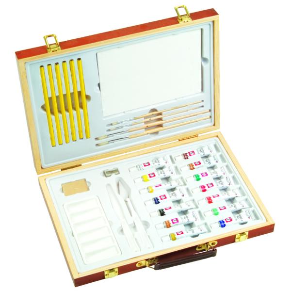 Art Painting Set with wooden painting box/palette/panel/brushes/colour/knives/pencils/eraser/sharpener