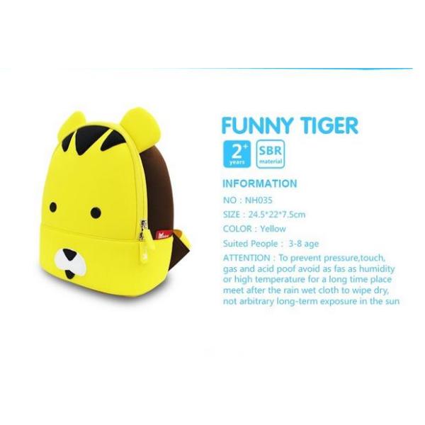 Yellow Personalized Kids Travel Backpack Funny Cartoon Tiger Water Resistant