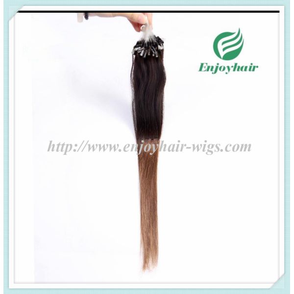Virgin brazilian hair straight hair micro ring loop hair extension, T2/8# color remy hair hand tied ,16''-26"length, Arbitrary style hair extension,so soft and no shedding no tangle.