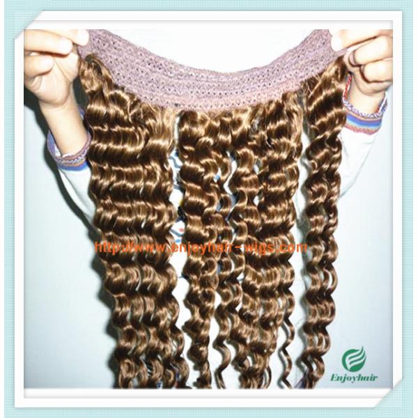 Virgin brazilian hair deep wave hair Flip-in hair extension, 33# color remy hair hand tied ,8''-26"length, Arbitrary style hair extension,so soft and no shedding no tangle.