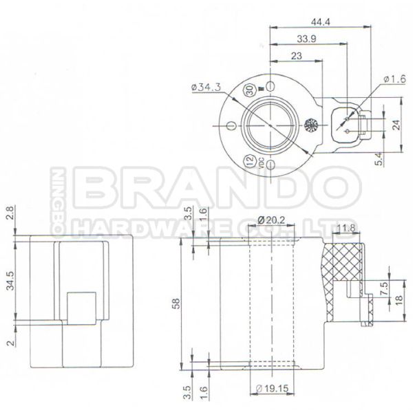 Dimension of Excavator Solenoid Coil: