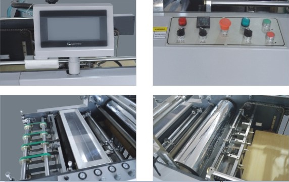 PROM series automatic laminating machine is a compound device, it is mainly equipped with transportation system, laminating system and cutting system. The electrical device is contolled by PLC, heating roller use the circulation of heated oil to insure the accuracy of laminating temperature. The whole machine has compact structure, automatization and humanity operation. It is the good choice for the large and medium scale enterprise.