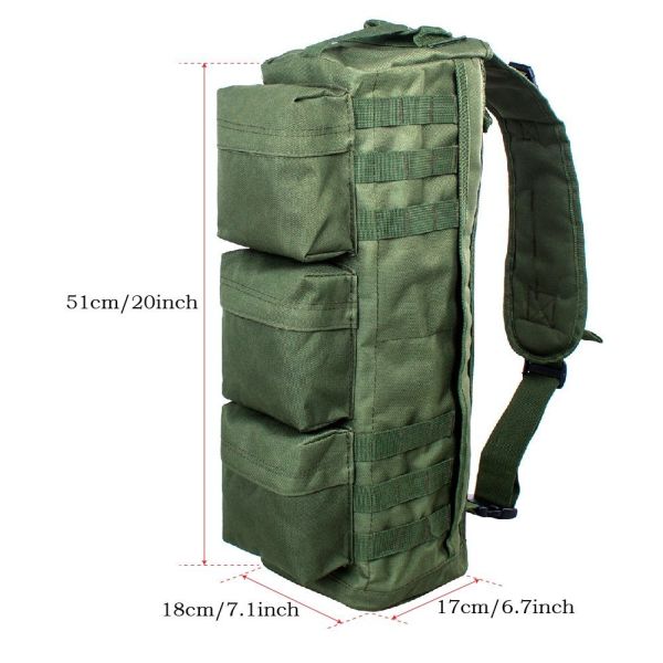 Double Stitched Modular MOLLE And/ Or A.L.I.C.E. Webbing System Throughout The Bag and Shoulder Strap So You Can Add On Additional Pouches & Other Tactical Gear. Features 5 Zippered Compartments ( 3 Outer Compartments, 1 Main Double Zipper Entry Compartment, 1 Hidden Flat Compartment Accessible From Either Side Of The Bag That Is Ideal For Documents & Small Items) For Organized Stoprage Of Your Essential Gear. The Padded & Contoured Adjustable Shoulder Strap Is Tactically Worn Over One Shoulder Or Around The Waist To Give The Operator On The Go Access By Rotating The Bag From Back To Front & Quick Accessibility To The Contents Of The Bag. Superior 600D Nylon Construction.