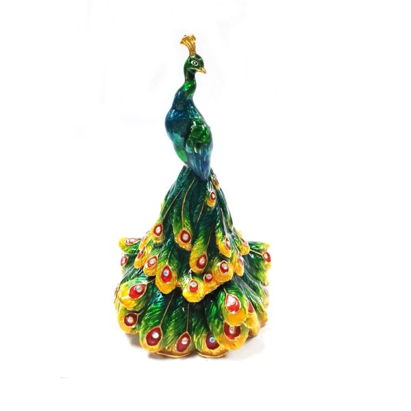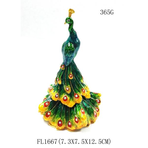 Shinny Gifts China Manufacturer Peacock Trinket Box Metal PeacockJewelry Box Pewter Box