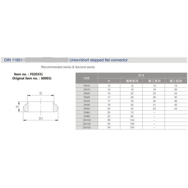 Product Name: | Stainless steel Food grade Union part DIN 11851 Male liner ,SUS304 Sanitary fitting |