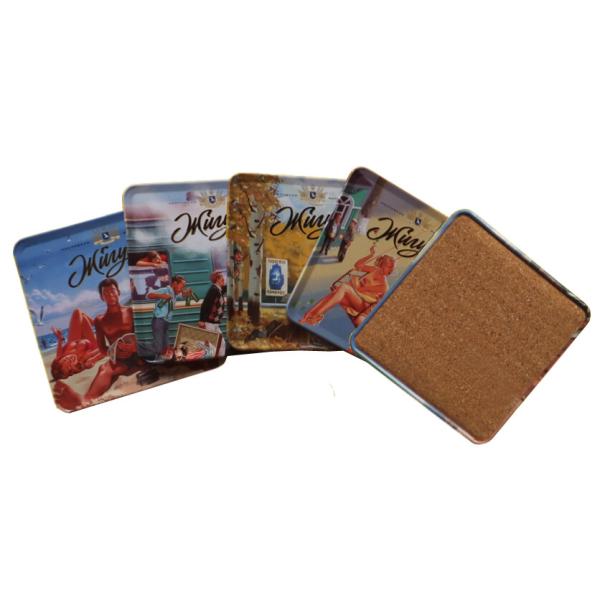 Mordern style Square Shape tin coaster with cork base set 4 in a tin box
