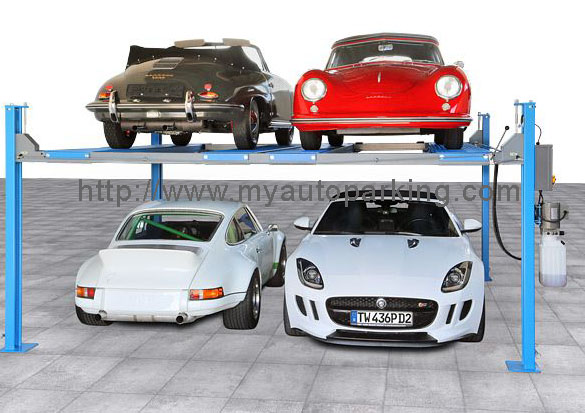 This parking system is designed 2 spaces of up and down as one unit. The bottom car can go in and out directly. When the upper space needs to park a car, the car in the bottom should be driven out.