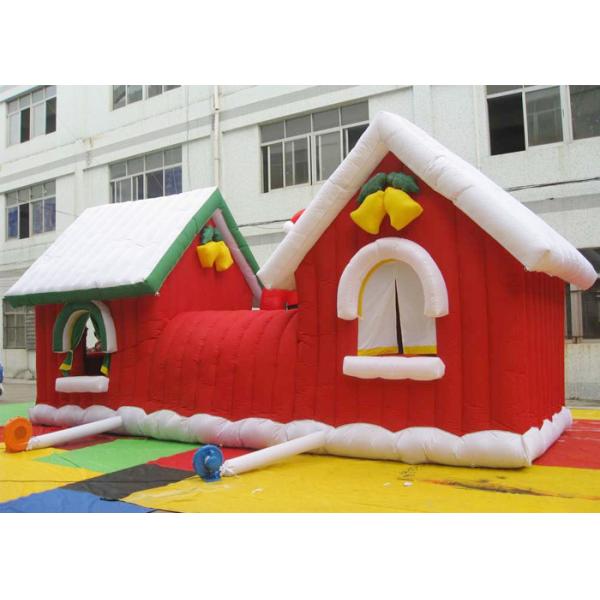This Christmas inflatable playground is designed into a small house with a yard. Large inflatable bouncing area inside and outside for children, with lots of cartoons design, include the Christmas trees, candy door, two snowmen in the yard, and gifts obstacle in the house. A small slide on the right side, two small doors for the Christmas house. This inflatable bouncer can be a great playground for your kids during the Christmas holiday.