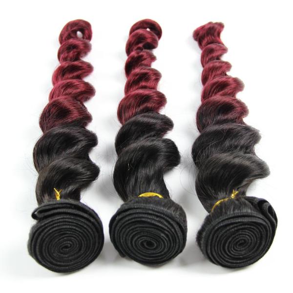 Natural Red Hair Extensions Ombre Human Hair 1B / 99J Loose Wave Hair 10"-30"
