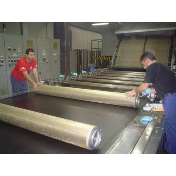 In rotary printing, the web travels at a consistent speed between the screen and a steel or rubber impression roller immediately below the screen. (The impression roller serves the same function as the press bed on a flatbed press.) As the web passes through the rotary unit, the screen spins at a rate that identically matches the speed of substrate movement.