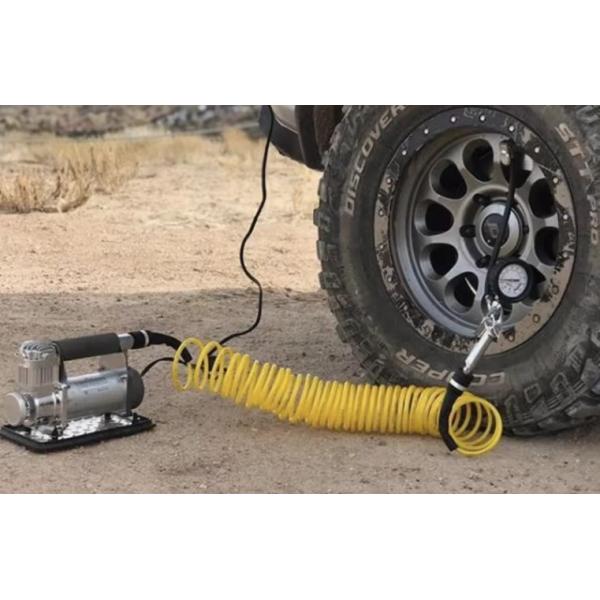 YF637 is a most portable and powerful compressor kit. It can provide various sizes of tires with very fast inflation without installation. Portable to carry with in the luxury component bag and always be ready to use. It also is provided with PU extension air hose.