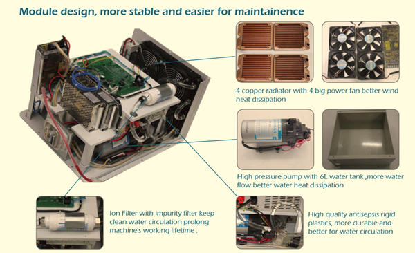2 super cooling systems,water, wind and semiconductor. Make sure comfortable treatment feelings and can also avoid the bars to be burned.