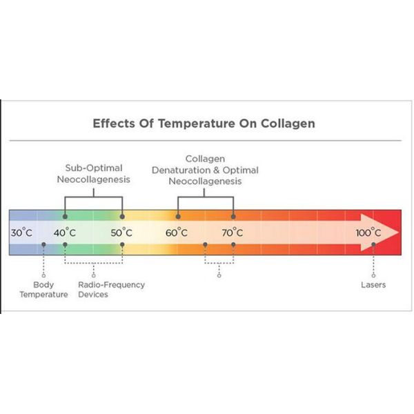 Neocollagensis occurs when tissues are heated to a threshold temperature, first denaturing weak collagen and then stimulating the growth of new collagen. It delivers ultrasound energy at precise temperatures to jump-start the neocollagenesis process.