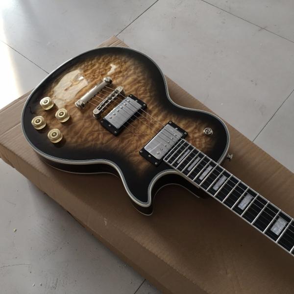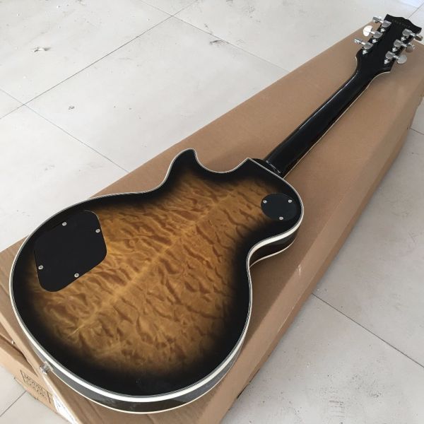 Buy NEW Arrival Custom Electric Guitar with TonePros, Ebony fretboard-fret nib binding, Quilted Maple Top & Back, in Brown at wholesale prices