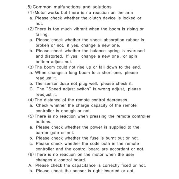 | Balance spring | According to length of barrier arm | 1 | for sapre usage |