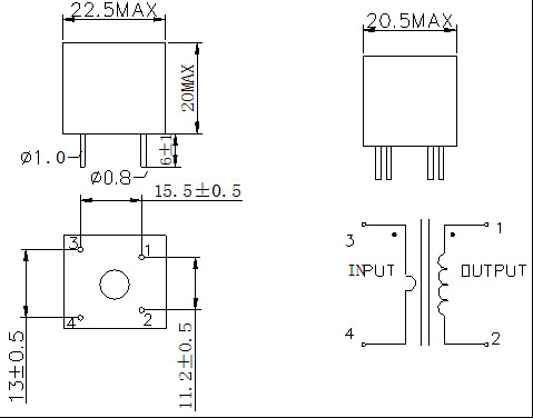 | Part No. | Rated primary current (A) | Max primary current (A) | Rated secondary current (A) | Current ratio | Max load resistance (Ω) | Linear (%) | Outline |