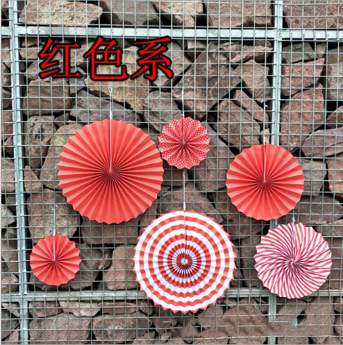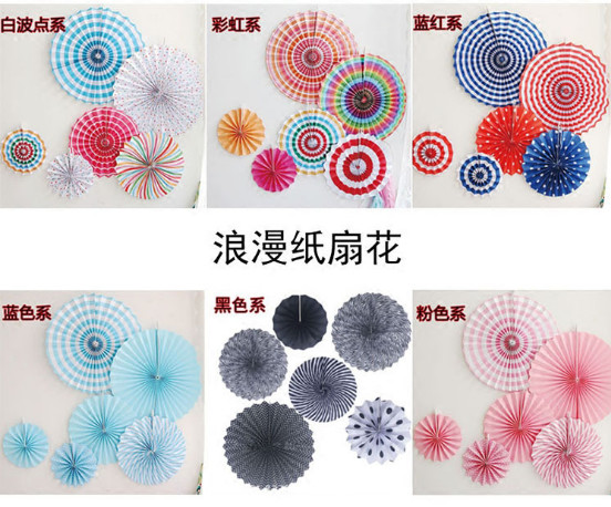 Festive festive supplies paper fan flower set home party wedding decoration decoration 6 sets of paper fan flowers.