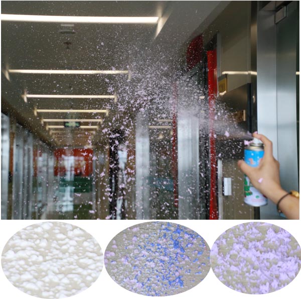Plyfit EN71 environmental fantastic Christmas artificial snow flake is used to create fabricating snow, snow scenery and joyful atmospheres.It is used to create snowing scenery with snowflakes flying in the air and melting away soon when they fall onto the ground.It does no harm to skin. The Flying Snow Spray is suitable for carnival,party,new year, wedding and any celebration.