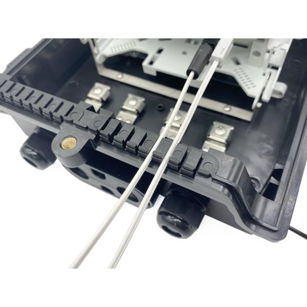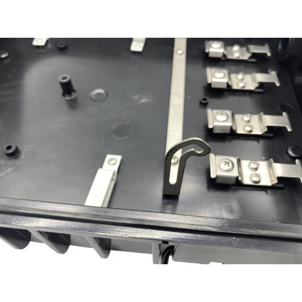The metal holder for the plate is stainless steel and fix on bottom with screws. There are 4sets of cable fixture kits for cable enter, humanity deisgn for ftth network.