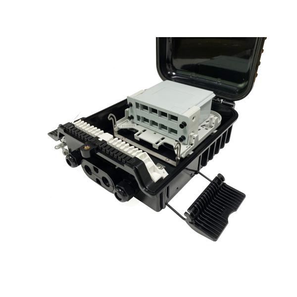 The equipment is used as a termination point for the feeder cable to connect with 16pcs drop cable in FTTH network system, it mix fiber splicing, splitting, and distribution in a box, and also provides solid protection and management for the FTTx network building.