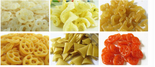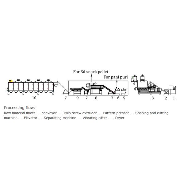 The processing line is used for producing 3D snacks pellet food such as triangle, hexogan, bad minton shape and so on.