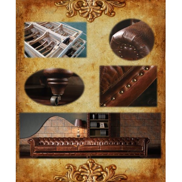 hand-distressed vintage leather and framed in rows of hand-applied nails.As beautiful as