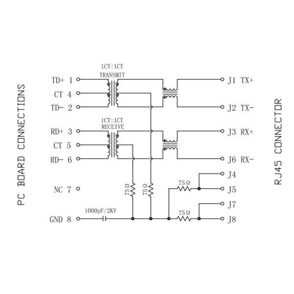 | Turn Ratio(±2%): | TX=1CT:1 RX=1CT:1CT |