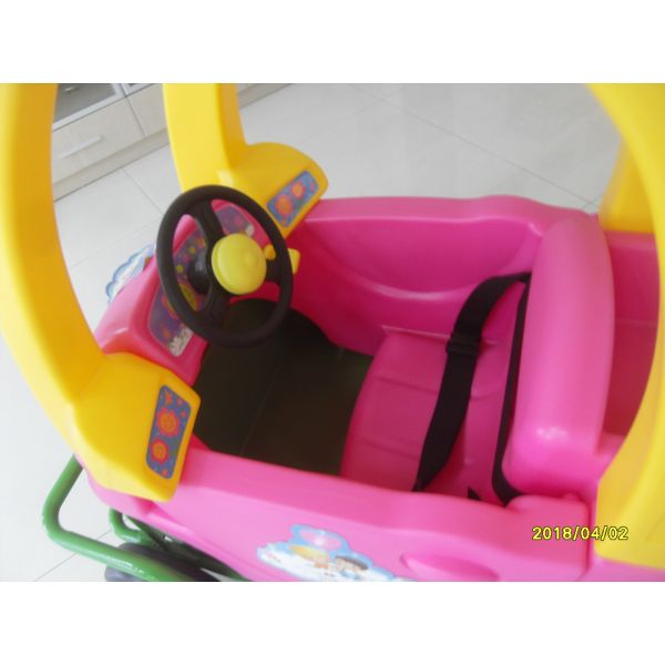 Plastic children cart with funny plastic car. Inside with safety belt , door with locker. For parents use . Baby can sit inside the cart and enjoy the shopping time in the stores. Suitable for supermarket and hyper market.
