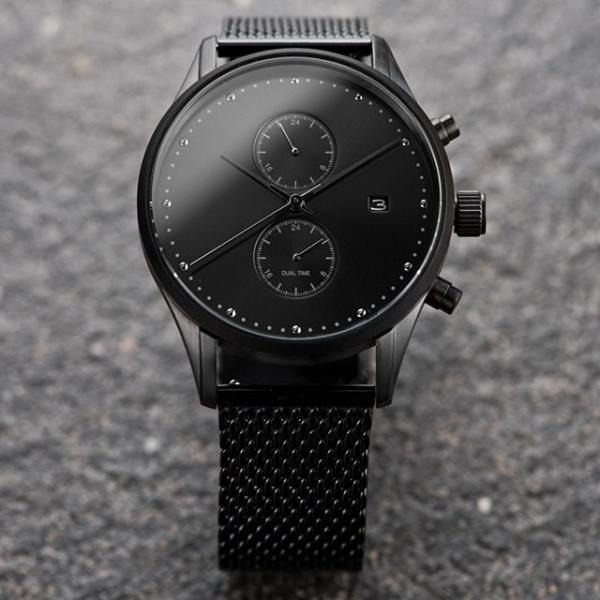 We use naturally crystallized black marble to make the watch dial, so each watch is unique because each marble dial is differen,sanded brushed case with black PVD coating color.As a high quality watch, we choose black calf leather strap.