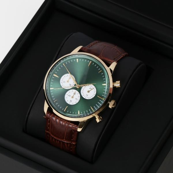 We use naturally crystallized black marble to make the watch dial, so each watch is unique because each marble dial is differen,sanded brushed case with black PVD coating color.As a high quality watch, we choose black calf leather strap.