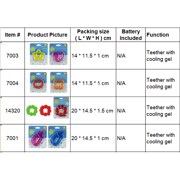 7.9 " BPA Free Teether W / Cooling Gel Infant Baby Toys Multiple