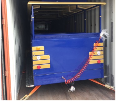 Four to eight nyon ties with euphroes are used to fix the locomotive and one carriage to the container,all the hook of euphroes will be fastened by iron wire