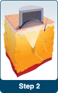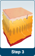 3. A continuous lesion is created in the targeted fat and the skin layer is not harmed.