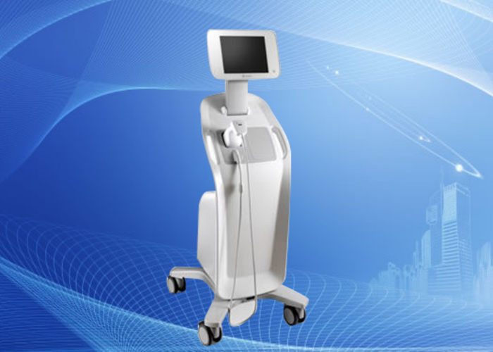 1. The treatment head of the Liposonix system is placed on the area to be treated.
