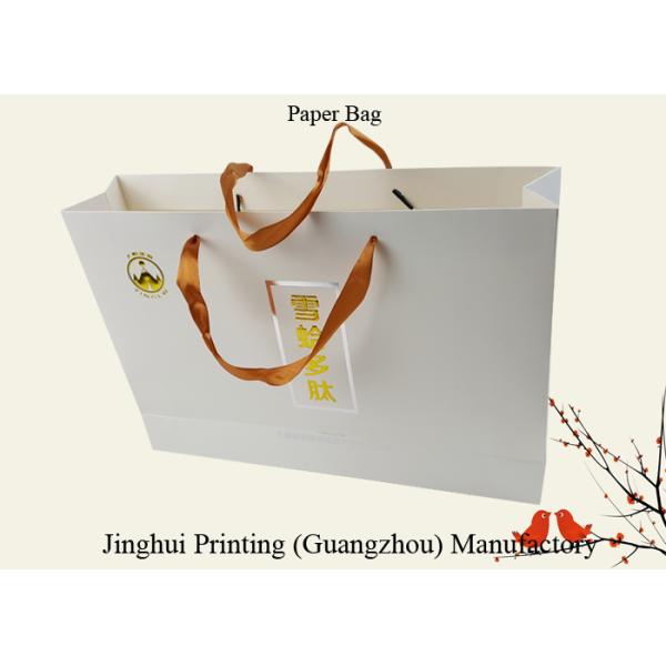White Color Gloss Art Paper Bags Custom Design Logo Gold Hot Stamping Embossing Craft Paper Bag