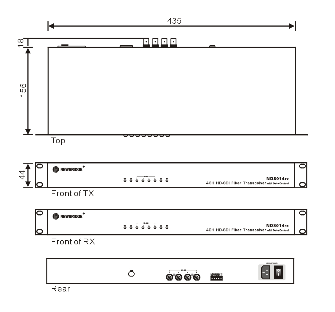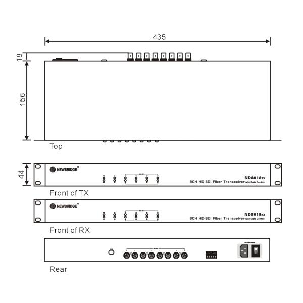 Newbridge® ND8014D/ND8018D SD/HD-SDI series Optical Transceivers are a group of perfect and economic transmission device to transmit 4CH/8CH SD/HD-SDI video to up to further distance by one fiber cable, embedded audio and RS485 data via fiber-optic.