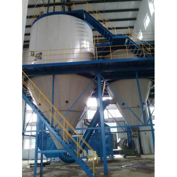 Sealed circulation spray drying system works in a seal circumstance. The drying gas is usually inert gas, such N2.It's applicable for drying material with organic solvent, toxic gas and the material easy to be oxidized. adopt inert gas as circulation gas, so to protect the material to be dried. The inert gas circulates after dehumidification process. N2 is heated and then enters into drying tower. Liquid material is conveyed to centrifugal nozzle by screw pump, and then it's atomized into the liquid mist by the atomizer, the heat transferring process is finished in the drying tower. The dry product is discharged at the bottom of tower, the evaporated organic solvent is sucked by the vacuum generated by the fan. Power or solid material will be separated in the cyclone and sprinkling tower. The saturated organic gas is drained out after it's condensed in the condenser. The gas not condensed recycles in the system after it's heated continuously. Ordinary normal centrifugal spray drying process is realized by air conveying and exhausting process. This is the obvious difference between explosion proof type sealed circulation centrifugal spray dryer and ordinary centrifugal spray dryer. The drying media in drying system is N2, the interior is under positive pressure. To keep positive pressure stable, the pressure transmitter controls the inlet amount of N2 automatically.