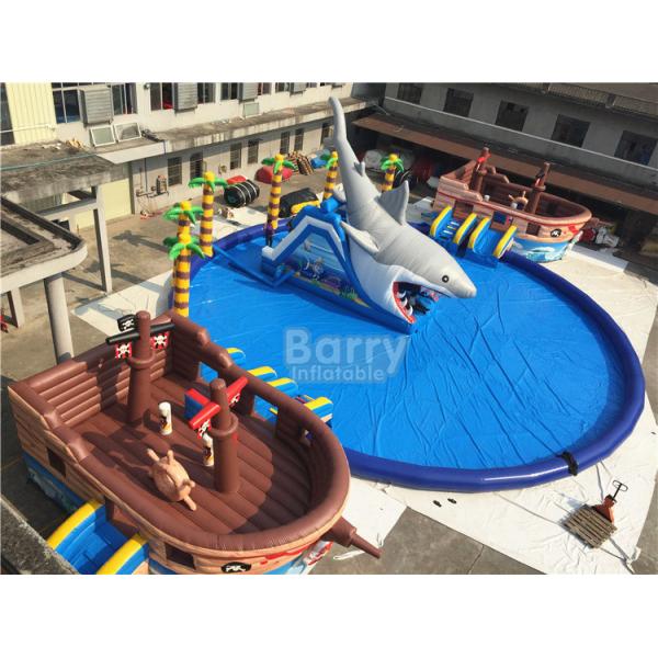 36.5x20x8.5mH Giant sharp and pirate ship theme inflatable water park on land