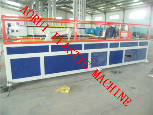 PVC threading pipe extrusion production line is mainly used to produce various PVC pipes, which are widely used in agricultural land, water supply and drainage of buildings, and cable laying. The production line consists of a conical twin-screw extruder, a vacuum sizing device, a tractor, a cutting machine and a flip frame.