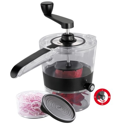 The spiral slicer cuts efficiently with 2 stainless steel blades.