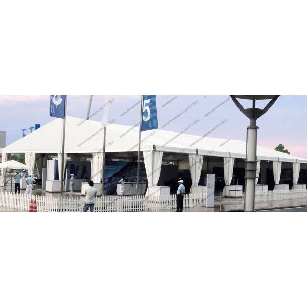This outdoor exhibition tent is made of aluminum, professional structure only for outdoor use. This tent is equipped with PVC fabric sidewall and movable fixing solution. You can design this tent for outdoor event such as exhibition and meeting, celebration and so on. Easy installation and useful building for your choice.